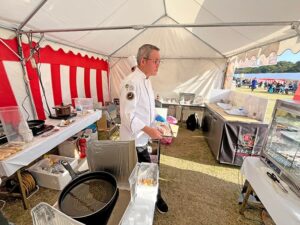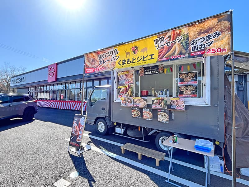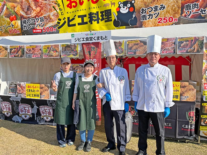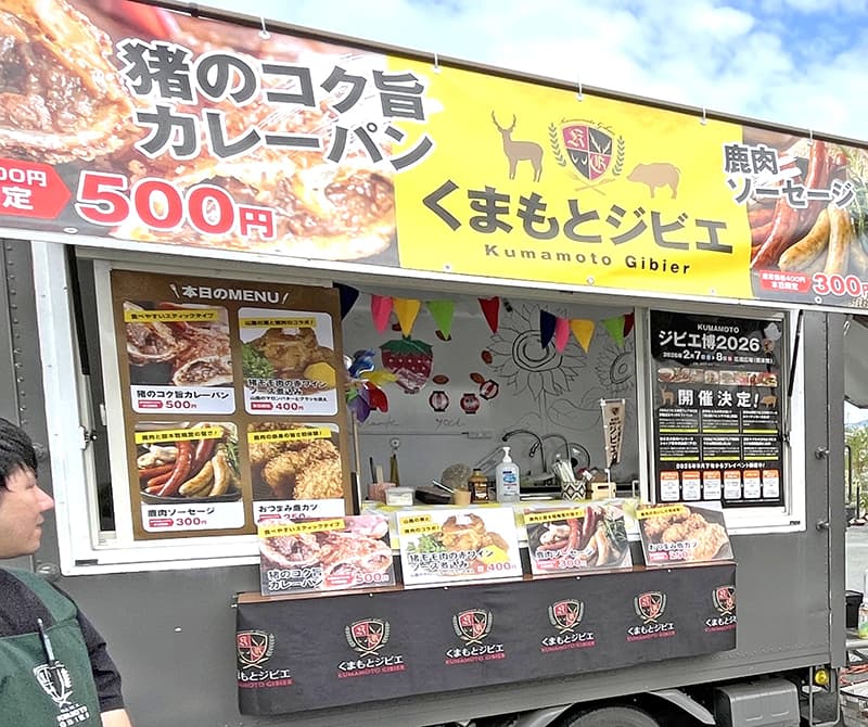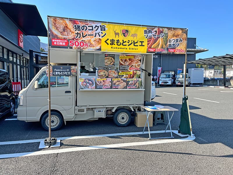 《2024年11月09日》2024年11月9日(土)~24(日)期間中、熊本県主催のジビエ料理キッチンカー県内巡回企画に協力し、販売メニュー開発の監修など行いました。