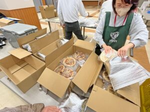 《2024年12月20日》熊本駅横の合同庁舎(九州農政局)にて、くまもとジビエ販売会を実施。当日は予約をいただいた皆さんに商品のお引渡しをしました。購入いただいた皆様、ありがとうございました。