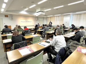 《2025年02月20日》「第1回ジビエ研修会( 熊本県と共催)」をフードパル熊本(熊本市)で開催。50名を超える参加があり、座学をはじめ猪・鹿の屠体を使った止め刺し体験講習を行いました
